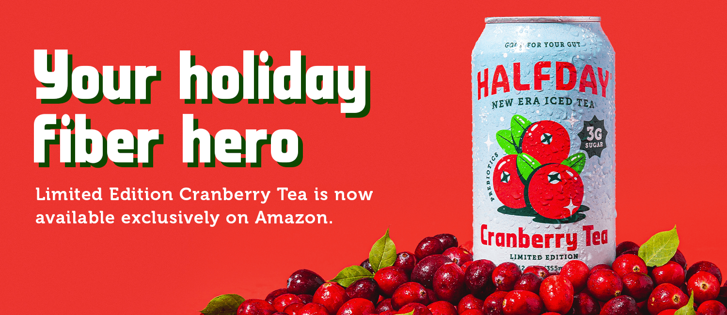 Американский бренд полезного холодного чая Halfday выпустил лимитированную праздничную новинку Cranberry Iced Tea.