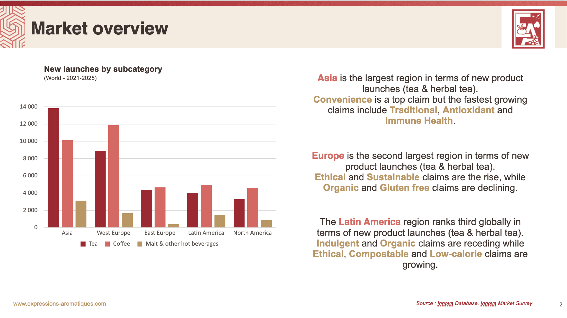Обзор показывает, в каких регионах сегодня сосредоточена основная инновационная активность и какие тенденции и направления формировали рынок горячих чаев в период 2021–2025 годов.