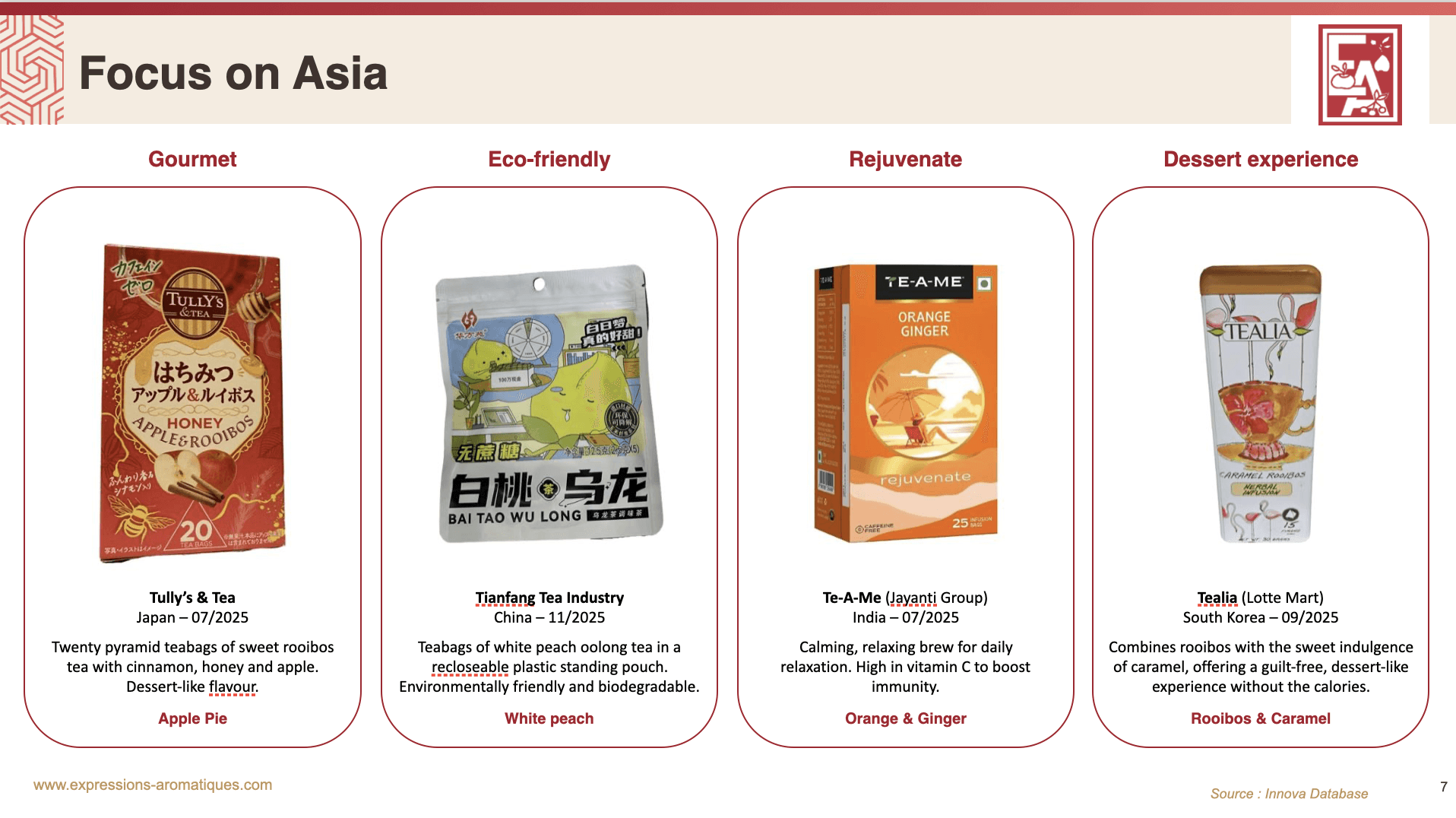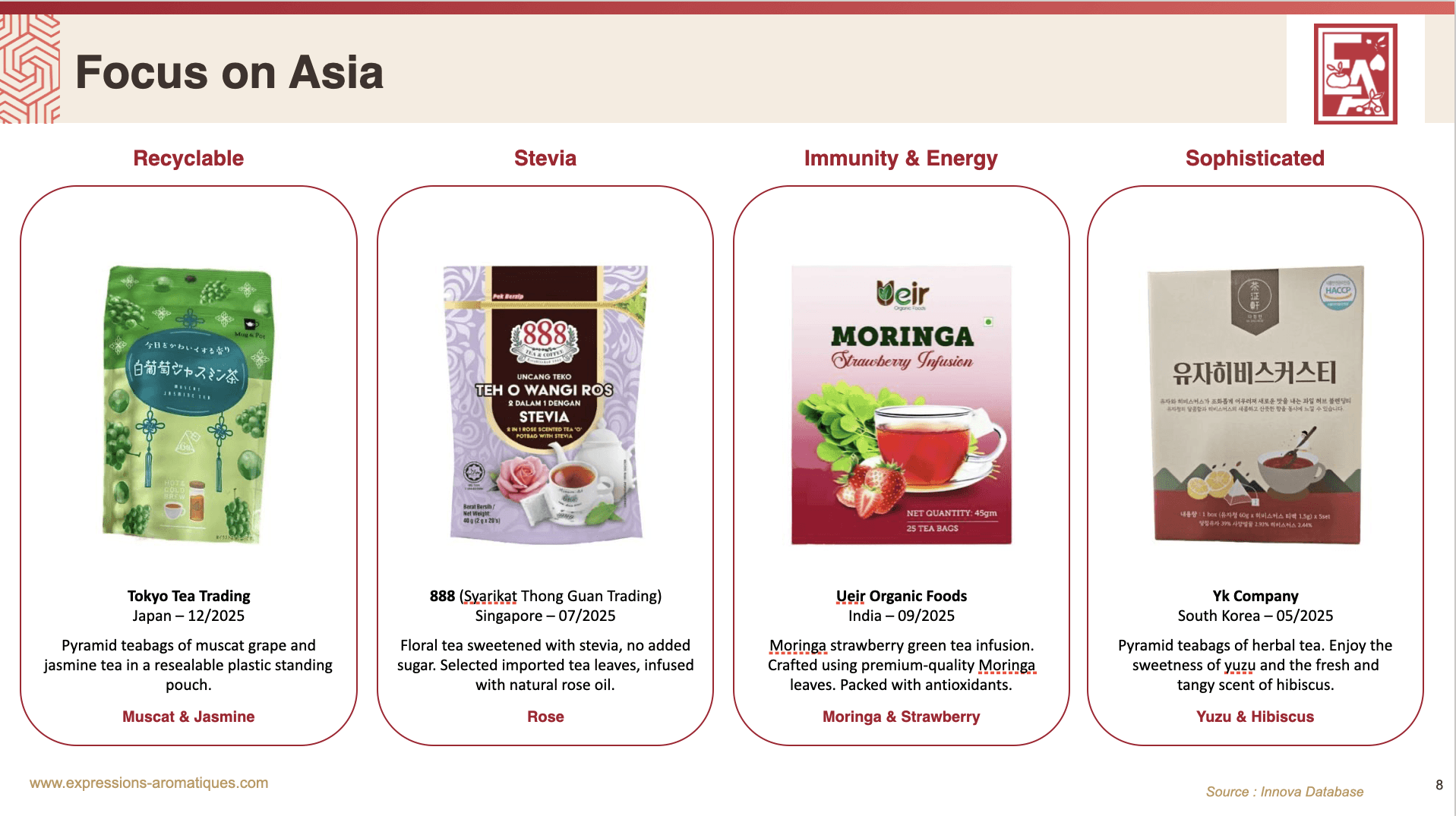 Азиатский рынок характеризуется сочетанием традиций и инноваций, а также активным развитием функциональной составляющей чайных продуктов.
