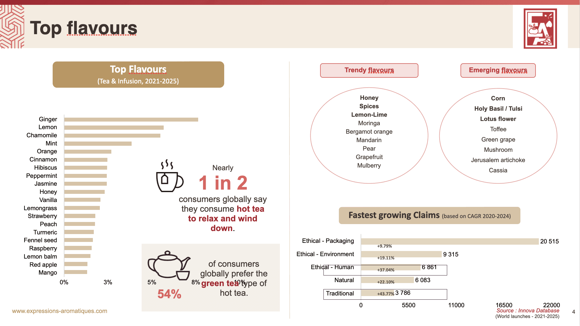 Из отчета становится ясно, что инновации во вкусе и функциональности идут рука об руку, формируя современный ландшафт рынка чайных напитков.