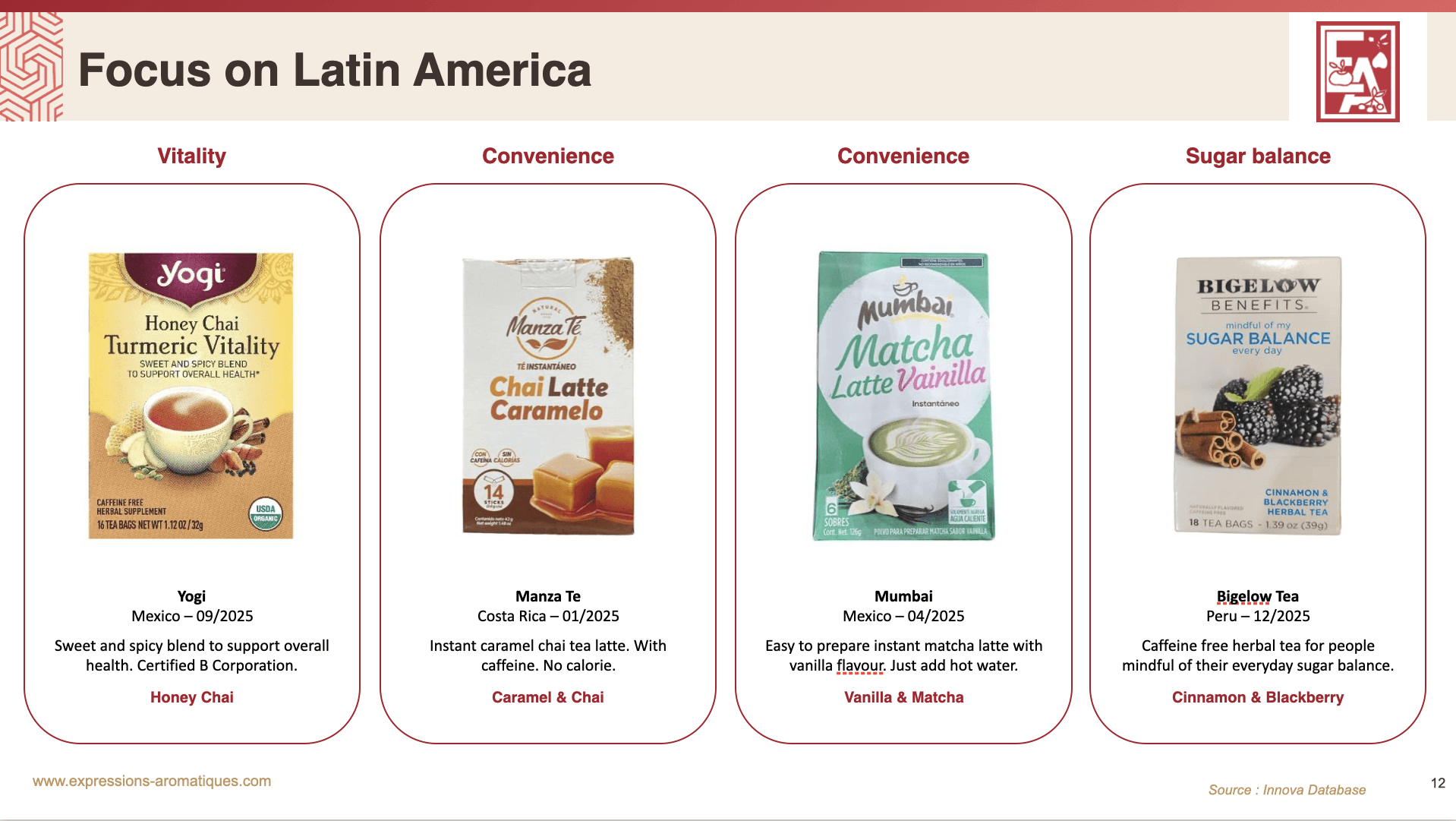 В Латинской Америке потребители ценят травяные и фруктовые чаи с пользой для пищеварения, энергии и общего самочувствия.