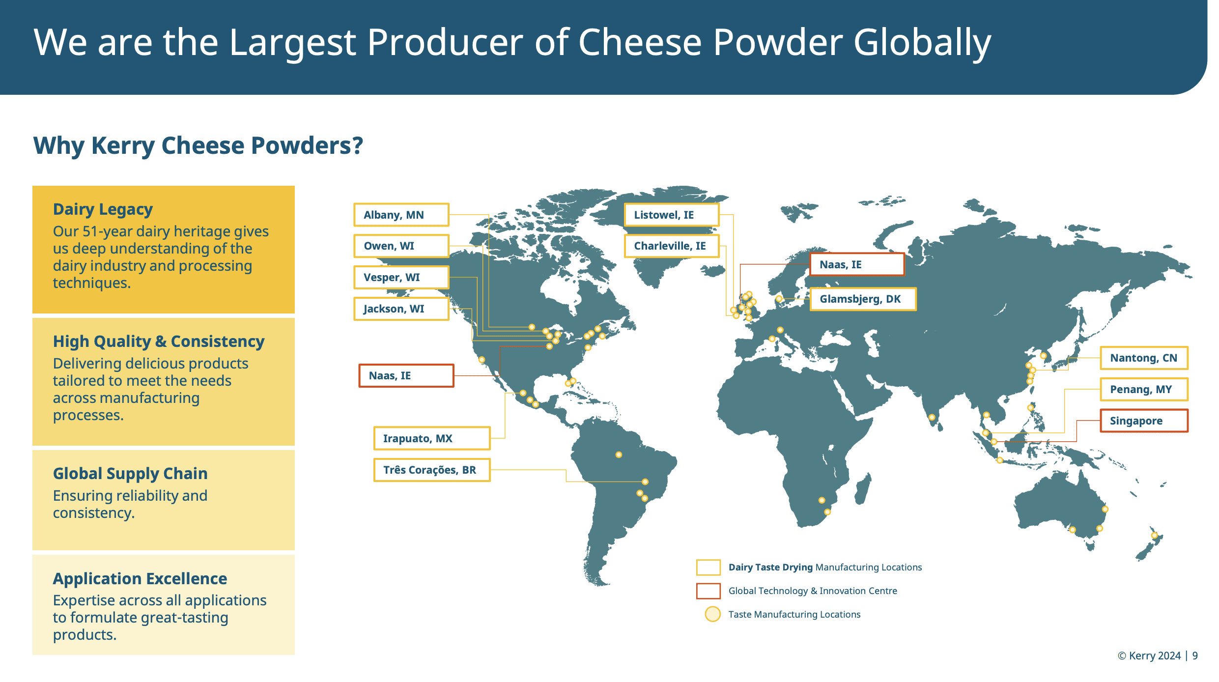 Компания Kerry Group является крупнейшим в мире производителем сырных порошков и объединяет более чем 50-летнюю экспертизу в области молочных ингредиентов и вкусовых технологий.