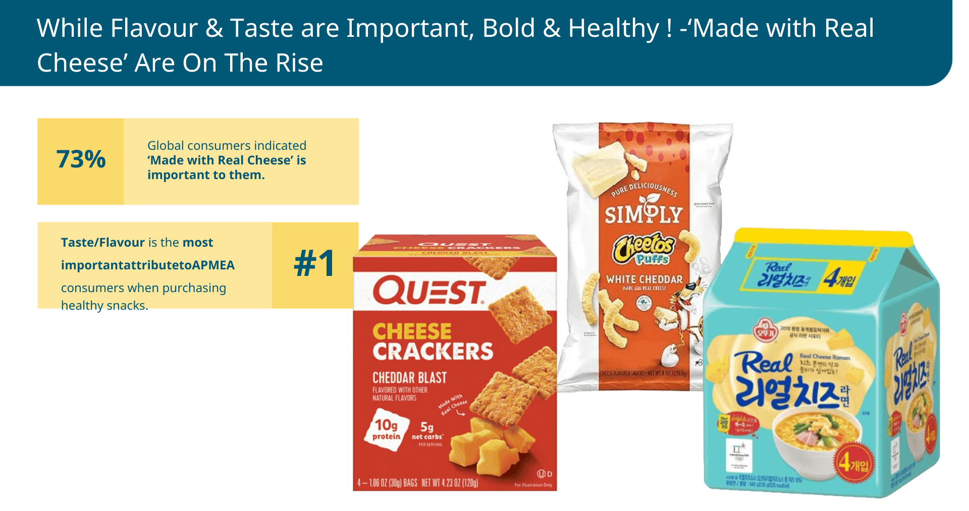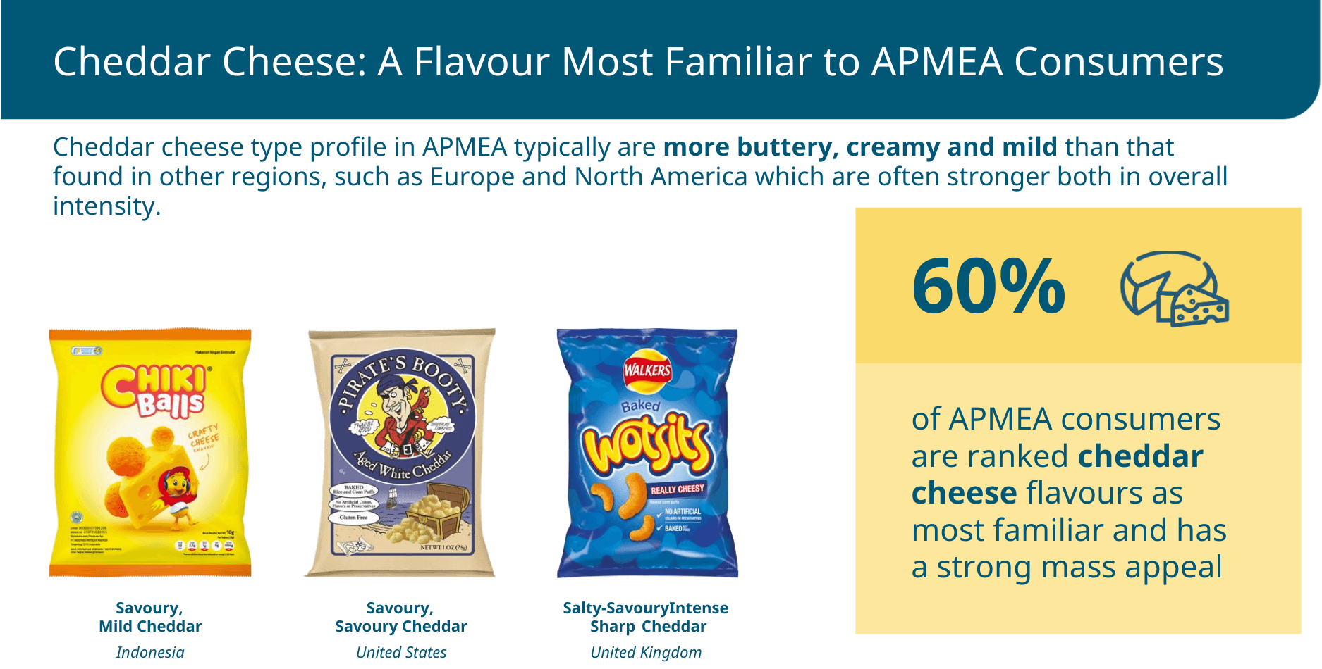 Чеддер остаётся самым узнаваемым и популярным сырным вкусом для потребителей в регионе APMEA. Однако его вкусовой профиль отличается от европейских и североамериканских аналогов.